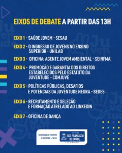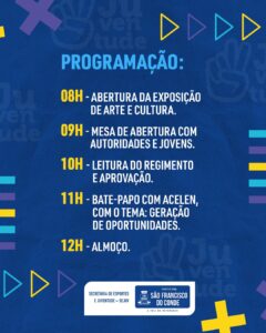 O evento, que acontecerá das 08h às 17h, na Praça do bairro do Caípe (Em frente ao CEAJAT), irá dialogar sobre o tema: Juventudes no hoje! Debater para construir!
